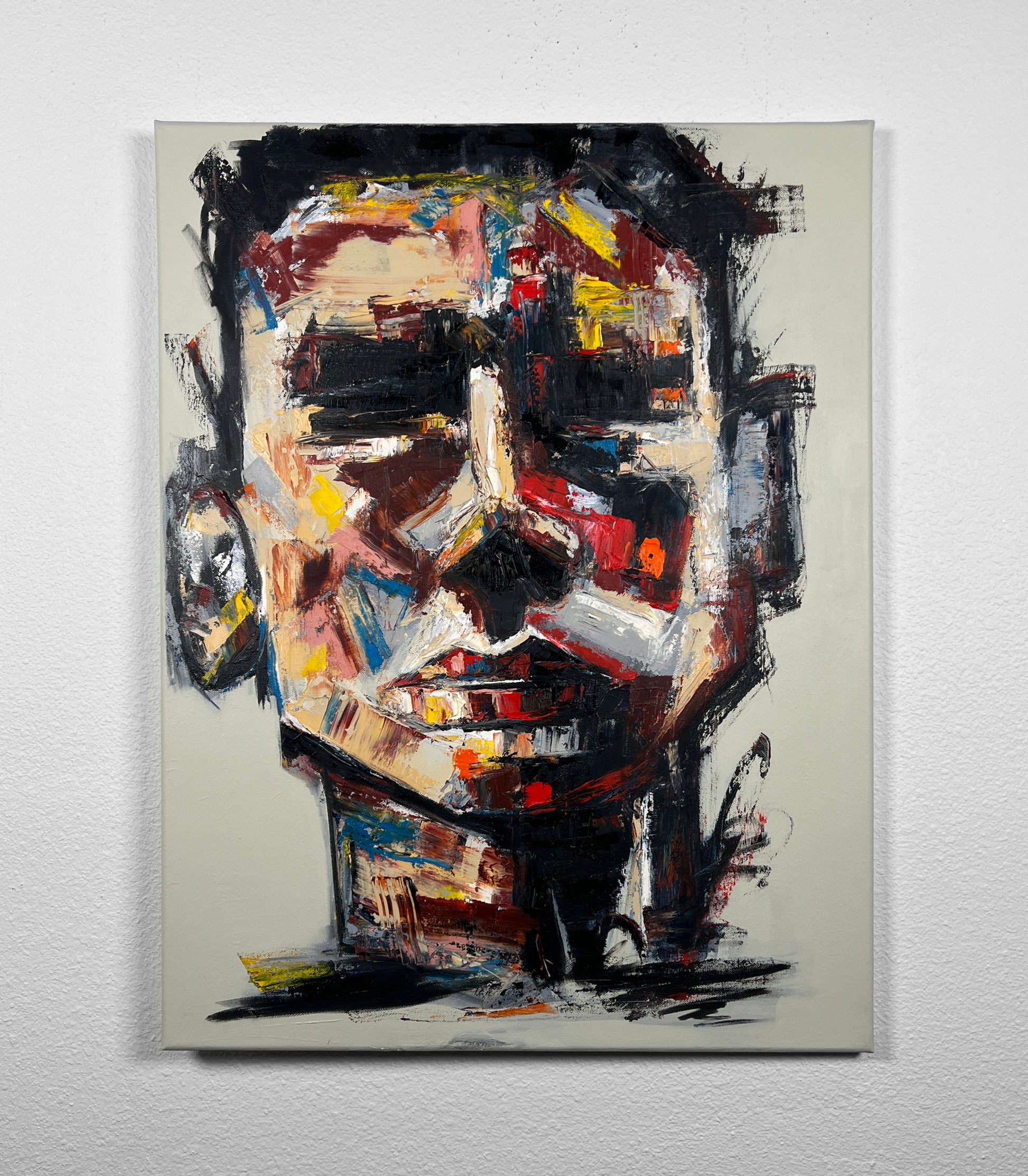 A dynamic interplay of color and form, this portrait explores the complexities of human emotion through abstract and expressive strokes. The artist manipulates light and shadow, creating a visceral connection to the viewer.
